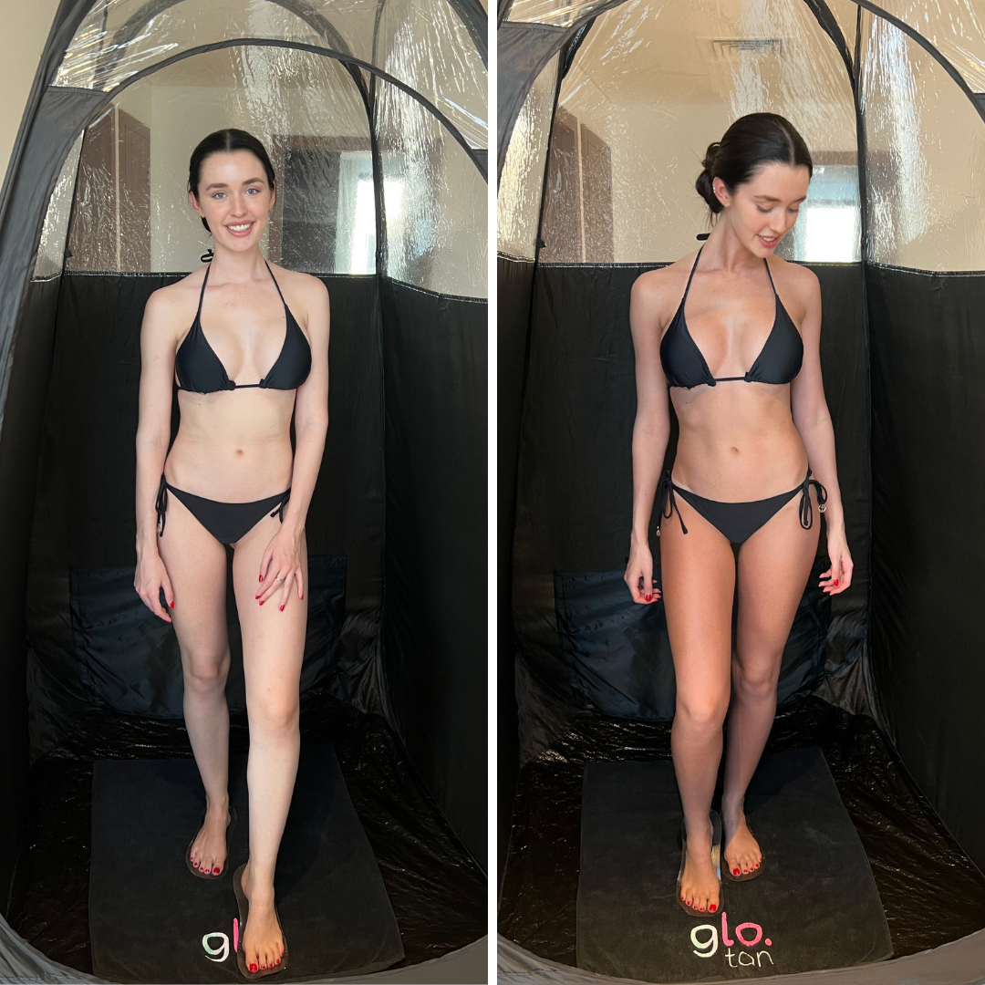 Classic Glo Tan is perfect for those who have enough time to plan ahead and wait for their first shower. It is available in four different custom shades: Light, Medium, Dark, and Deep Dark